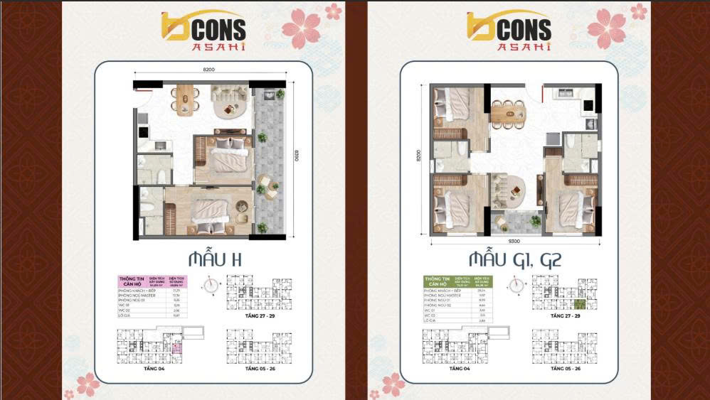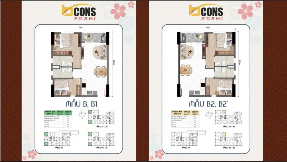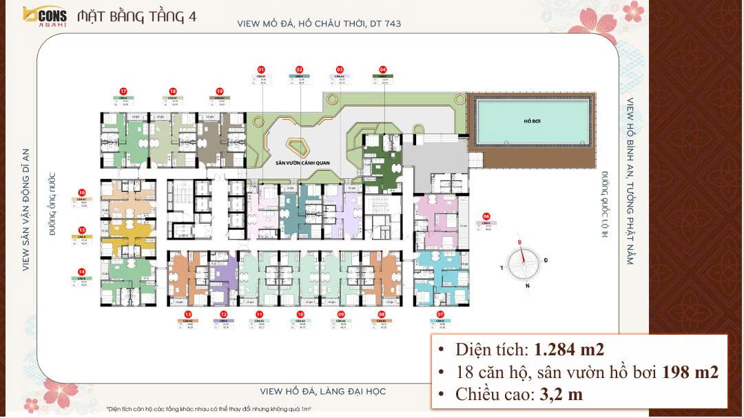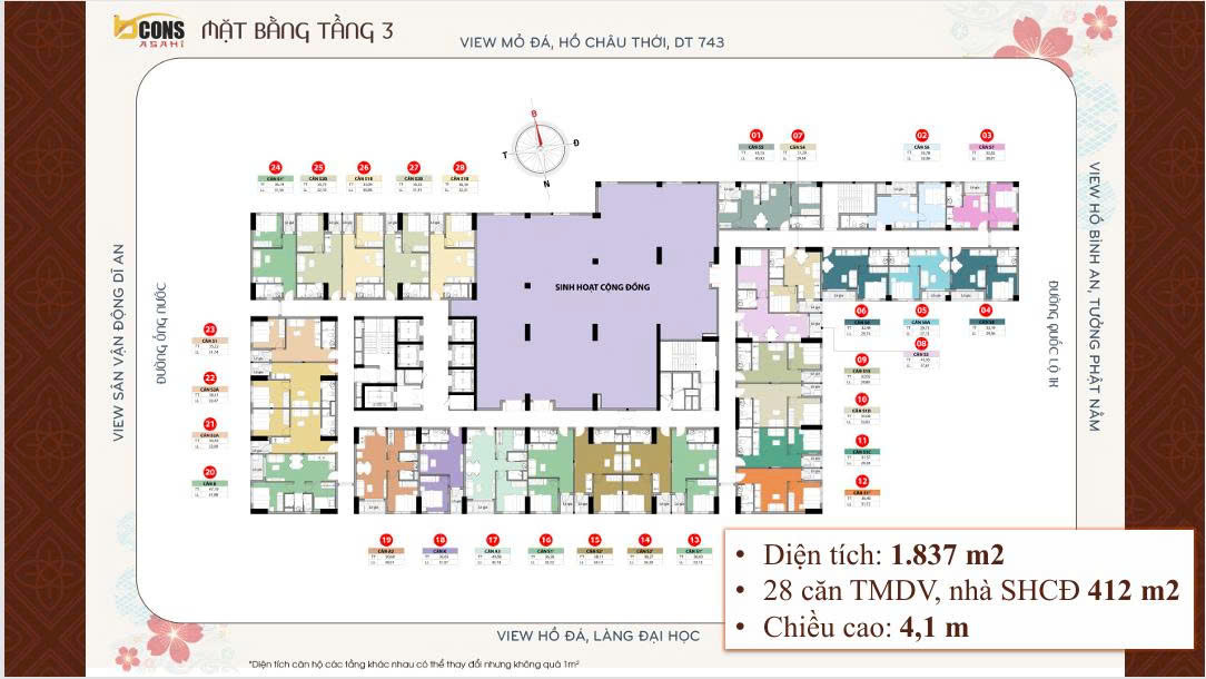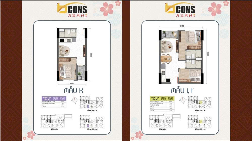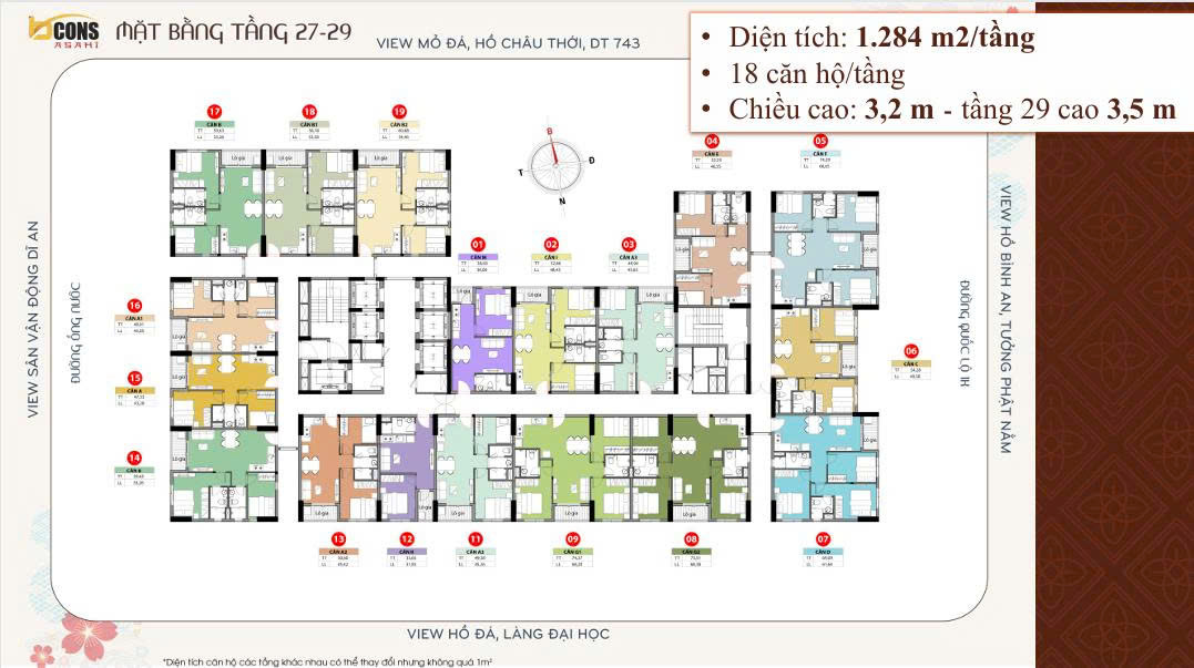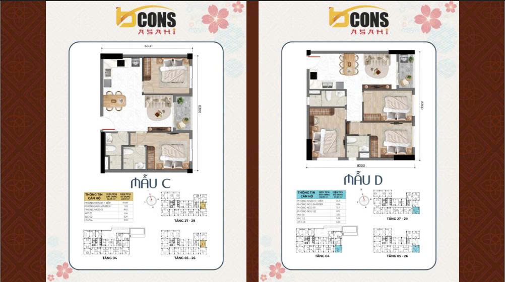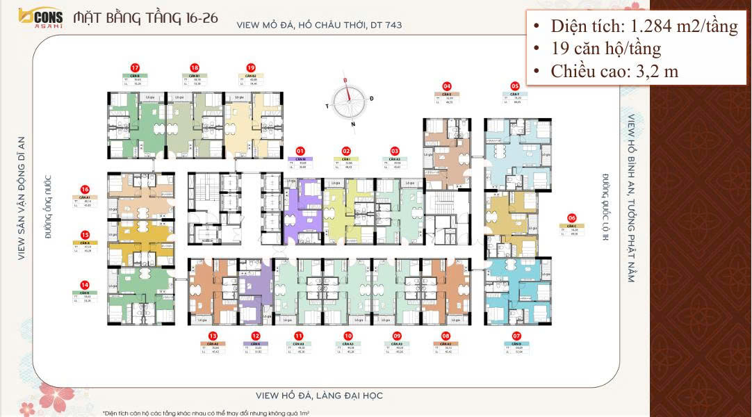 Dự án Bcons Asahi sẽ có các thiết kế căn hộ khác nhau tuỳ theo mỗi tầng.